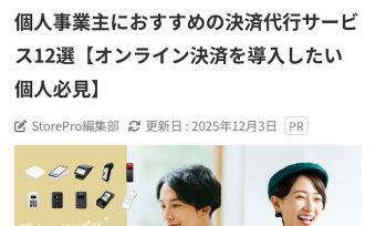 監修記事掲載のお知らせ(StorePro【個人事業主におすすめの決済代行サービス12選【オンライン決済を導入したい個人必見】)