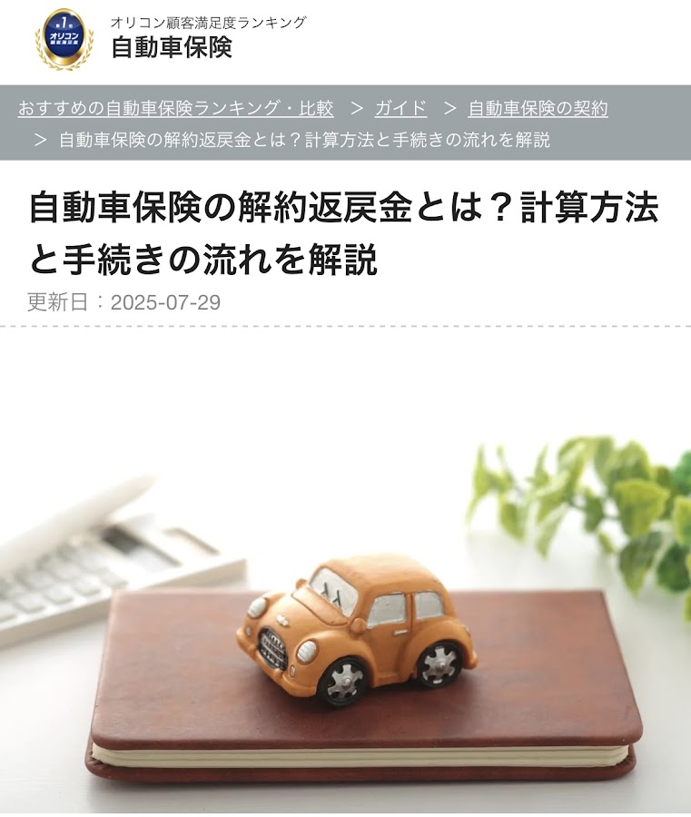 執筆記事掲載のお知らせ(オリコン満足度ランキング【自動車保険の解約返戻金とは?計算方法と手続きの流れを解説】