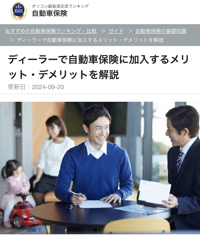 執筆記事掲載のお知らせ(オリコン満足度ランキング【ディーラーで自動車保険に加入するメリット・デメリットを解説】)