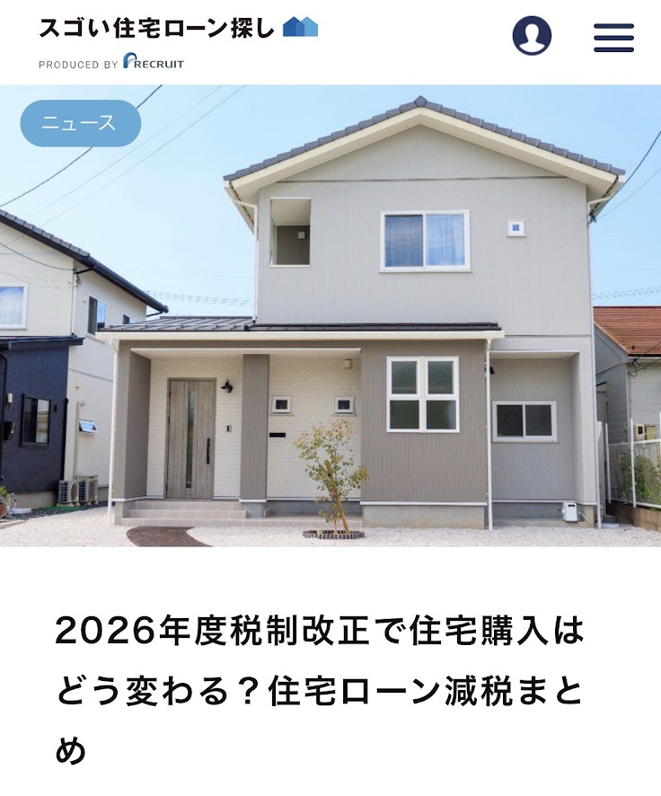 監修記事掲載のお知らせ(スゴい住宅ローン探し【2026年度税制改正で住宅購入はどう変わる?住宅ローン減税まとめ】)