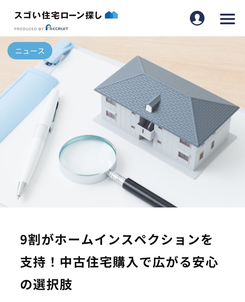 監修記事掲載のお知らせ(スゴい住宅ローン探しサイト【9割がホームインスペクションを支持!中古住宅購入で広がる安心の選択肢】)