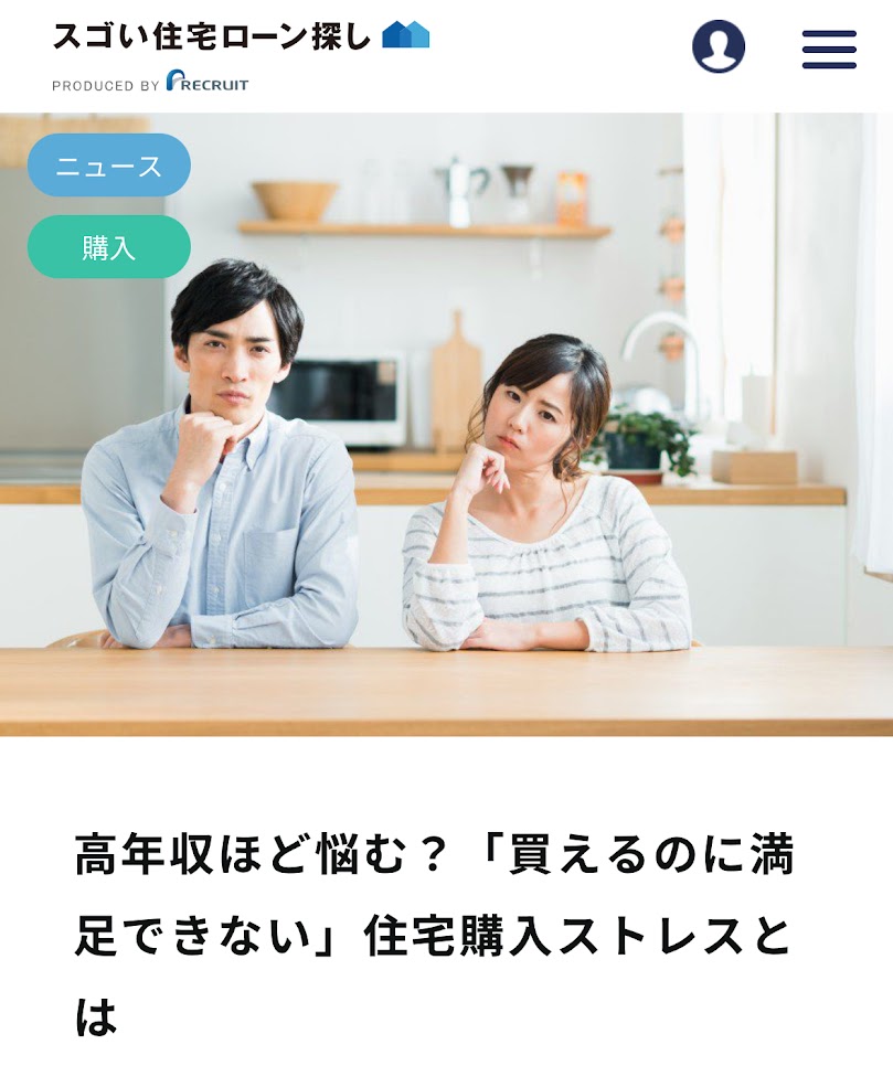 監修記事掲載のお知らせ(スゴい住宅ローン探しサイト【高年収ほど悩む?「買えるのに満足できない」住宅購入ストレスとは】)