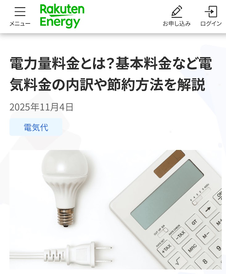 監修記事掲載のお知らせ(楽天エナジー【電力量料金とは?基本料金など電気料金の内訳や節約方法を解説】)
