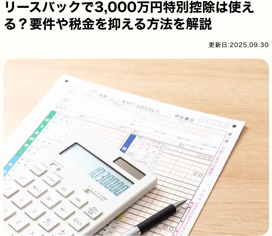 【リースバックで3,000万円特別控除は使える?要件や税金を抑える方法を解説】